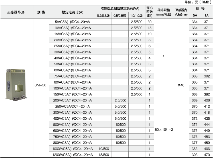 具體型號:AKH-0.66/SM SM-50I 100/AC5A/DC4-20mA